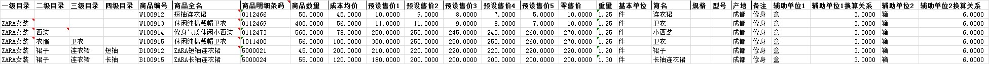 5、预设售价1~零售价(非必填项):皆为该行商品的销售价格,您可以设置不同的销售价格,方便以后卖给不同的客户。现在没有价格,以后也可以再设置。