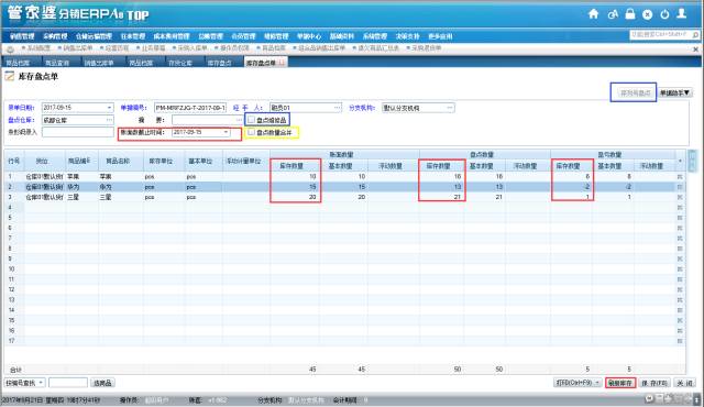 系统可根据选择的仓库、货位,自动生成盘点单和盘点差值报告,完成库存盘点时的调整工作。